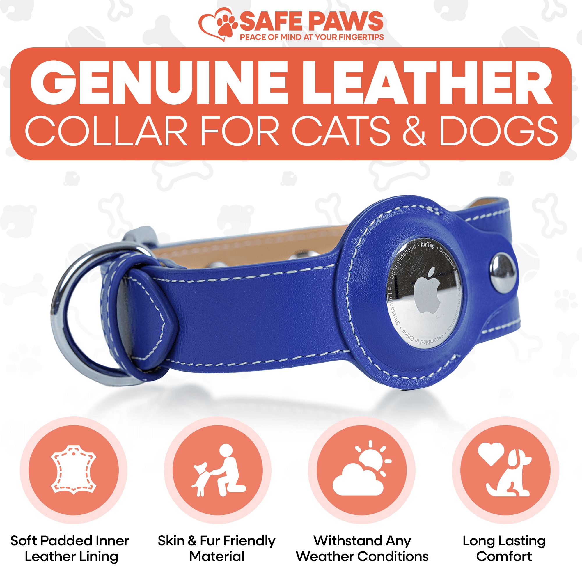 Safe Paws - Leather AirTag Collars